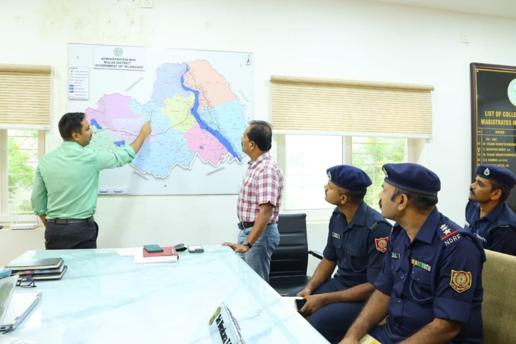 ఆకేరు న్యూస్ ములుగుః ప్రస్తుతం వర్షాకాలం లో సంభవించే విపత్తులలో ప్రాణ నష్టం జరగకుండా సహాయక చర్యలు చేపట్టుటకు సిద్ధంగా ఉండాలని అధికారులను కలెక్టర్ దివాకర కోరారు. మంగళవారం జాతీయ విపత్తు ప్రతిస్పందన బృందం (ఎన్డీఆర్ఎఫ్) జిల్లా కు చేరుకున్నారు.ఈ సందర్భంగా కలెక్టర్ తన ఛాంబర్లో అదనపు కలెక్టర్ రెవెన్యూ సి హెచ్ మహేందర్ జి తో కలిసి సమీక్ష సమావేశం నిర్వహించారు. గోదావరినది, జంపన్న వాగు పరిసర ప్రాంతాల ప్రజలకు ముందస్తు జాగ్రత్త చర్యలపై అవగాహన కల్పించాలని జిల్లా కలెక్టర్ దివాకర టి.ఎస్.అధికారుకు సూచించారు.జిల్లాలోని రామప్ప, లక్నవరం సరస్సులు, గోదావరి నది, జంపన్నవాగు నీటి ప్రవాహం గతంలో జరిగిన సంఘటనల గురించి (ఎన్డీఆర్ఎఫ్) బృందం నకు వివరించారు. గోదావరి నది, జంపన్న వాగు పరిసర ప్రాంతాలు ఊరటం, నార్లాపూర్, మేడారం నీటి ప్రవాహ ప్రాంతాలను పరిశీలించి, అకాల వర్షం, విపత్తులలో తీసుకోవాల్సిన జాగ్రత్తల పై ప్రజలకు అవగాహన కల్పించాలని ఎన్డీఆర్ఎఫ్ బృందం ను కోరారు. ఎన్డీఆర్ఎఫ్ బృందం నకు కావలసిన అన్ని ఏర్పాట్లను సమకూర్చాల్సిందిగా జిల్లా పంచాయతీ అధికారి కి సూచించారు.