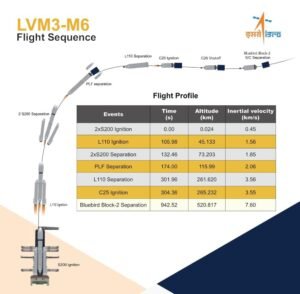 దాదాపు 6.1టన్నుల బరువు ఉండే రాకెట్(LVM3) లాంచ్ వెహికల్ మార్క్3 మిషన్ 6 సహాయంతో అమెరికాకు చెందిన AST స్పేస్ బ్లూ బర్డ్ బ్లాక్-2 కమ్యూనికేషన్ ఉపగ్రహాన్ని విజయవంతంగా లో – ఎర్త్ ఆర్బిట్లోకి చేర్చింది. దేశీయంగా అభివృద్ధి చేసిన LVM3 ద్వారా భారత్ నుంచి పంపిన అతి భారీ పేలోడ్గా ఈ ప్రయోగం రికార్డు సృష్టించింది.