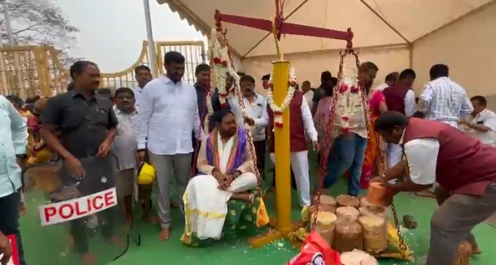 ఆకేరు న్యూస్,ములుగు:మేడారం శ్రీ సమ్మక్క-సారలమ్మ మహా జాతర భక్తజన సంద్రమై వర్ధిల్లుతోంది. మాజీ మంత్రి, బిఆర్ఎస్ సీనియర్ నాయకులు ఎర్రబెల్లి దయాకర్ రావు అమ్మవార్లను దర్శించుకొని తన బరువుకు సమానమైన బెల్లాన్ని అమ్మవార్లకు కానుకగా సమర్పించి మొక్కులు తీర్చుకున్నారు.ఈ కార్యక్రమంలో ఎర్రబెల్లితో పాటు పలువురు బిఆర్ఎస్ ముఖ్య నాయకులు, కార్యకర్తలు పాల్గొన్నారు. అమ్మవార్ల గద్దెల వద్ద ప్రత్యేక పూజలు నిర్వహించిన అనంతరం, ప్రజలందరూ ఆయురారోగ్యాలతో, సుఖసంతోషాలతో ఉండాలని వారు ప్రార్థించారు.మేడారం జాతర సందర్భంగా భక్తుల రద్దీని దృష్టిలో ఉంచుకుని అధికారులు విస్తృత ఏర్పాట్లు చేశారు. రాజకీయ ప్రముఖుల రాకతో గద్దెల పరిసర ప్రాంతాల్లో సందడి నెలకొంది…