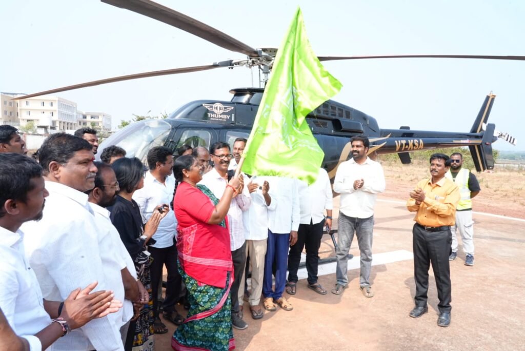 ఆకేరు న్యూస్, ములుగు: ములుగు జిల్లా కేంద్రంలోని డిగ్రీ కళాశాల ఆవరణలో పర్యాటక శాఖ ఆధ్వర్యంలో తుంబి ఎయిర్ లైన్స్ ఈ సేవలను అందిస్తున్నారు. గురువారం మంత్రి సీతక్క జెండా ఊపి హెలికాప్టర్ రైడ్ సర్వీసు సేవలను ప్రారంబించారు.