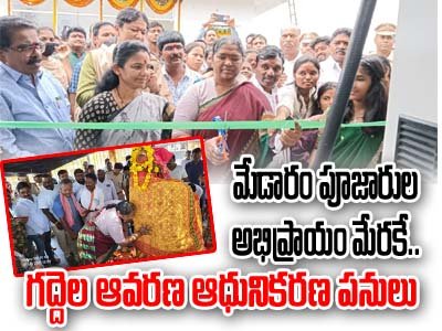 దేవతల గద్దెలను దర్శించుకునేందుకు వరుసగా అమ్మవార్ల గద్దెలు నిర్మాణం చేపట్టేందుకు ప్రణాళికలు సిద్ధం చేస్తున్నామని అన్నారు ఒకే వరుసలో దేవతల గజ్జలు ఉండటం వలన భక్తులు సునాయాసంగా దర్శించుకోనేందుకు వీలుగా ఉందని పోలీసులు పూజారులు అధికారులు సమక్షంలోనే గద్దెలఆవరణలో శాశ్వత పనులు చేపడతామని వివరించారు ఇందులో ఎలాంటి అపోహాలకు తావు లేకుండా చర్యలు తీసుకుంటామని వివరించారు. కార్యక్రమంలో ములుగు మార్కెట్ కమిటీ చైర్మన్ రేగ గ కళ్యాణి,కాంగ్రెస్ పార్టీ ములుగు జిల్లా అధ్యక్షుడు పైడాకుల అశోక్ , గ్రంథాలయ సంస్థ చైర్మన్ రవిచందర్, ములుగు డి.ఎస్.పి రవీందర్, తాడ్వాయి మండల కమిటీ అధ్యక్షుడు బొల్లు దేవేందర్ ముదిరాజ్, పూజారులు మండల నాయకులు కార్యకర్తలు