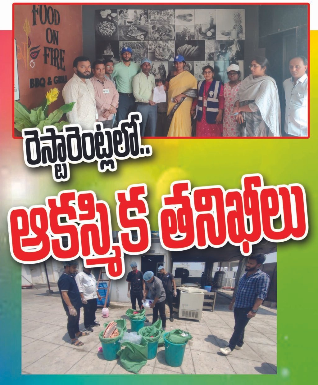 ఆకేరున్యూస్, హన్మకొండ: తెలంగాణ రాష్ట్ర ఫుడ్ సేఫ్టీ కమిషనర్ ఆర్ వి కర్ణన్ ఆదేశాల ప్రకారం తెలంగాణ రాష్ట్ర ఫుడ్ సేఫ్టీ టాస్క్ ఫోర్స్ టీం హెడ్, జోనల్ అసిస్టెంట్ ఫుడ్ కంట్రోలర్ వి.జ్యోతిర్మయి ఆధ్వర్యంలో టాస్క్ ఫోర్స్ ఫుడ్ ఇన్స్పెక్టర్స్ రోహిత్ రెడ్డి ,స్వాతి, శ్రీషికలతో కూడిన బృందం హనుమకొండ పట్టణంలో గల ఫుడ్ ఆన్ ఫైర్, ల్యాండ్ మార్క రెస్టారెంట్లలో ఆకస్మిక తనిఖీలు నిర్వహించారు. ఈ రెస్టారెంట్ల నందు వంట గది పూర్తిగా అపరిశుభ్రంగా ఉండడం, మురికితో దుర్వాసన కలిగిన రిఫ్రిజిరేటర్ లో ఫుడ్ సేఫ్టీ ప్రమాణాల ప్రకారం సరైన ఉష్ణోగ్రతను మైంటైన్ చేయకపోవడమ్, మరియు సుమారు 45వేల రూపాయల విలువ కలిగిన 32 కిలోల నిలువ చేసిన కుళ్ళిన మాంసపు ఉత్పత్తులను, హానికర ప్రమాదకరమైన రంగులను కలిపిన చికెన్ కాలం చెల్లిన ఐస్ క్రీములు, పాల ప్యాకెట్లు, మసాలాపొడులు,లేబుల్ డిఫెక్ట్స్ కలిగిన కార్న్,కొబ్బరి పొడి మరియు ఇతర ఆహార ముడి సరుకులు మరియు, ఫంగస్ తో కూడుకున్న కాలీఫ్లవర్,క్యాబేజీ వంటి కూరగాయలను, గుర్తించడం, బిర్యానీ మరియు ఇతర ప్రాసెస్డ్ ఫుడ్స్ తయారీలో మోతాదును మించి హానికర రసాయనాలతో కూడిన రంగులను వాడటం,హోటల్ యాజమాన్యంపై ఫుడ్ సేఫ్టీ టాస్క్ ఫోర్స్ టీం హెడ్ అయిన వి. జ్యోతిర్మయి తీవ్ర ఆగ్రహం వ్యక్తంచేస్తూ,అప్పటికప్పుడే ప్రజల ఆరోగ్యానికి భంగం కలగకూడదని వాటిని ధ్వంసం చేసి ఎఫ్ ఎస్ ఎస్ 2006, చట్టాన్నిఉల్లంఘించినందుకు నోటీసులు జారీ చేయడం జరిగింది మరియు అనుమానిక శాంపిలను సేకరించి హైదరాబాద్లో గల ల్యాబ్ పంపడం నివేదిక ఆధారంగా కల్తీ అనే నిర్ధారణ అయితే వారిపై చట్టరీత్య చర్యలు ఉంటాయని తెలిపారు. ఈ రకమైన ప్రజారోగ్యంతో చెలగాటమాడే ఆహార తయారీదారులు మరియు ఆహారం అమ్మేవారు ఆహార పరిరక్షణ ప్రమాణాలను పాటించి, ఫుడ్ సేఫ్టీ నిబంధనలకు అనుగుణంగా ఆహారాన్ని ప్రజలకు విక్రయించాలని హెచ్చరిస్తూ లేనియెడల చట్ట ప్రకారం క్రిమినల్ కేసులు నమోదు చేస్తూ అవసరమైతే సంబంధిత శాఖ సహాయంతో సీజ్ కూడా చేస్తామని హెచ్చరించారు. ఆహారాన్ని తయారుచేసి, నిలువ చేసి,రవాణా చేసి ప్రజలకు అమ్మే వ్యాపారస్తులు కల్తీల పట్ల అవగాహన పెంచుకోవాలని, ప్రజలకు స్వచ్ఛమైన శుచి, శుభ్రత గల ఆహార పదార్థాలను మరియు ఆహార వ్యాపారులు సరైన బాధ్యతతో వ్యవహరించాలని, సురక్షితమైన కల్తీ లేని ఆహారాన్ని ప్రజలకు అందించవలసిందిగా వ్యాపారస్తులను taskforce టీం హెడ్ V. Jyothirmai సూచించారు. ఈ నిబంధనలు పాటించని యెడల చట్ట ప్రకారం శిక్షకు గురి కాబడతారని హెచ్చరించడం జరిగింది. ఈ టాస్క్ ఫోర్స్ దాడులలో అధికారులతో పాటు పలువురు సిబ్బంది పాల్గొనడం జరిగింది.