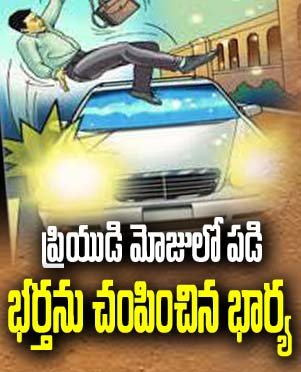 * బైక్ పై వెళ్తున్న భర్తను కారుతో ఢీకొట్టించి హత్య